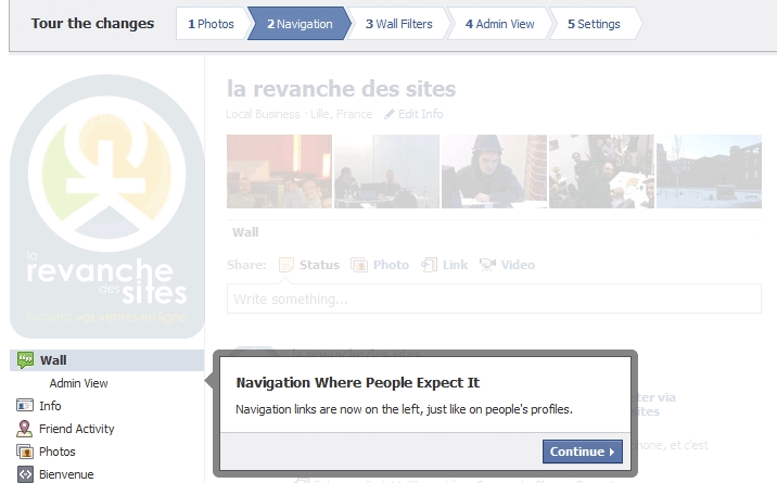 Pour tester ces nouvelles fonctionnalités, il vous suffit de vous rendre sur votre page. Facebook vous proposera (comme d’habitude) un tour des nouveautés, puis vous aurez la possibilité de migrer vers cette nouvelle fanpage.