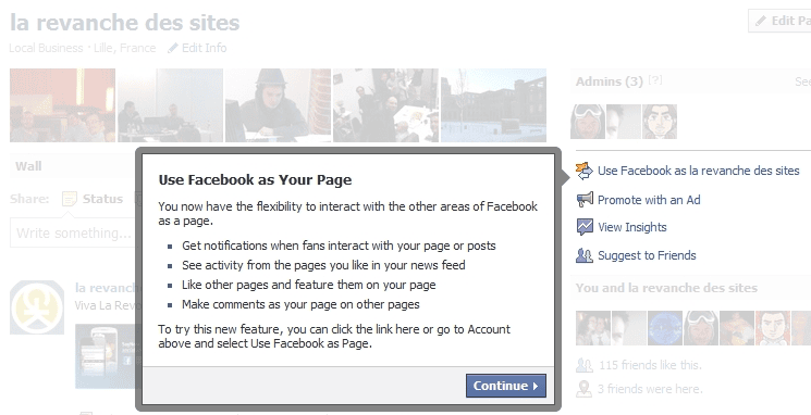 - Possibilité de poster des commentaires en tant que Fanpage (ou toujours en tant que personnes) sur les autres fanpages !