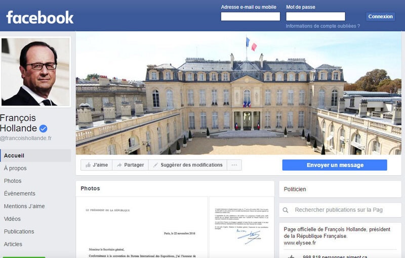 Enfin, notons que comme le veux la coutume, le site de campagne de François Hollande pointe désormais vers sa page Facebook.